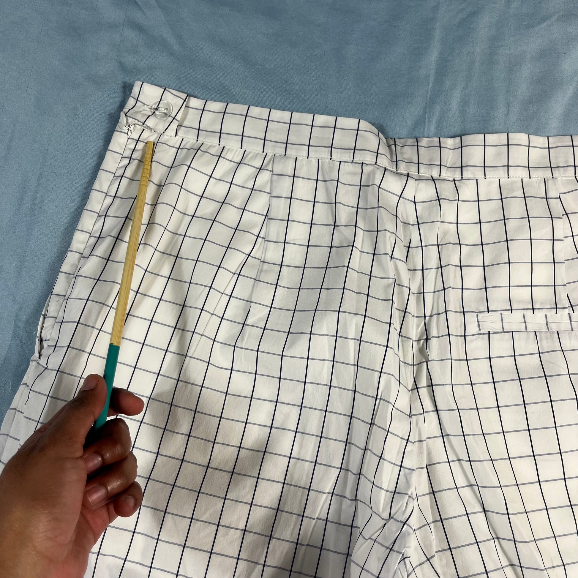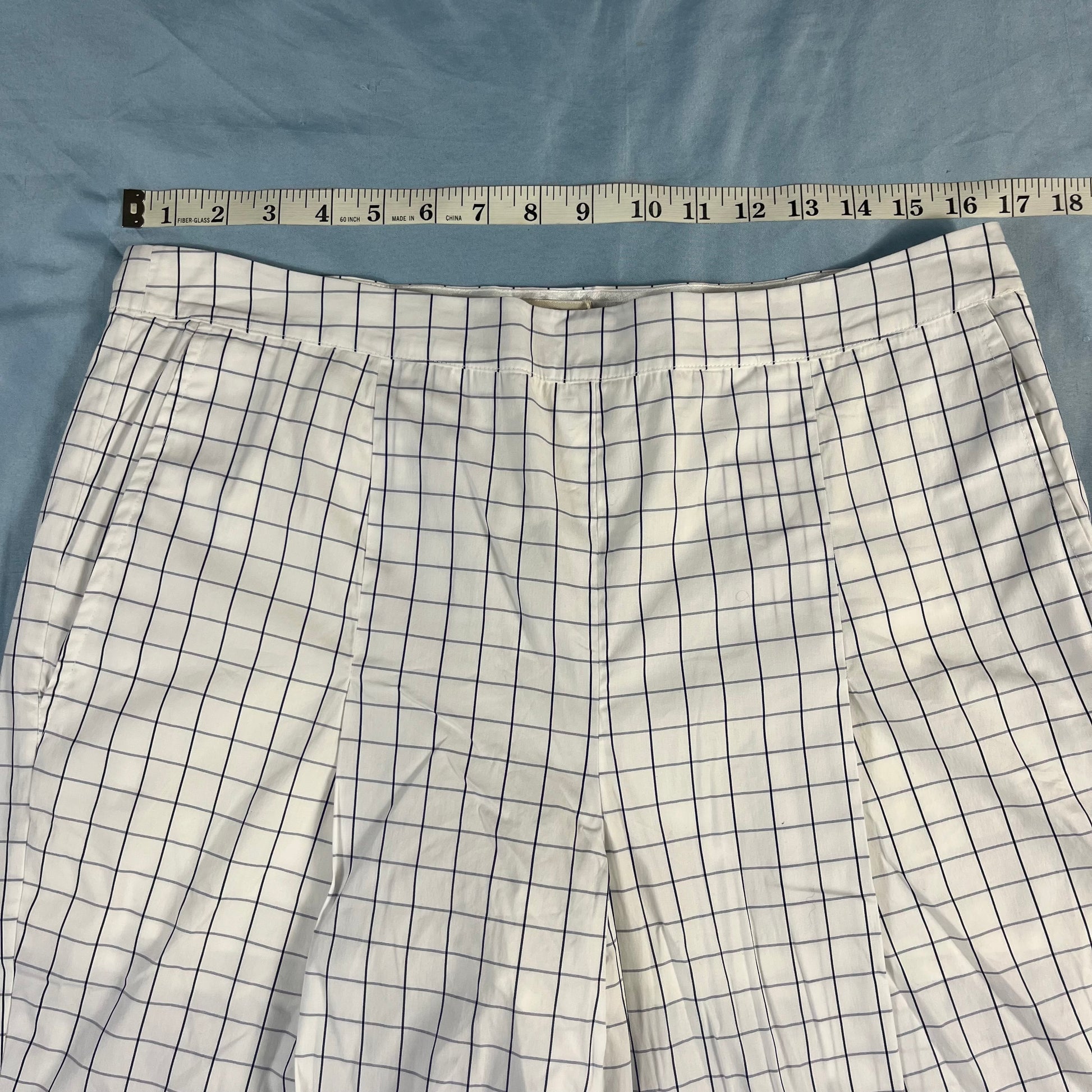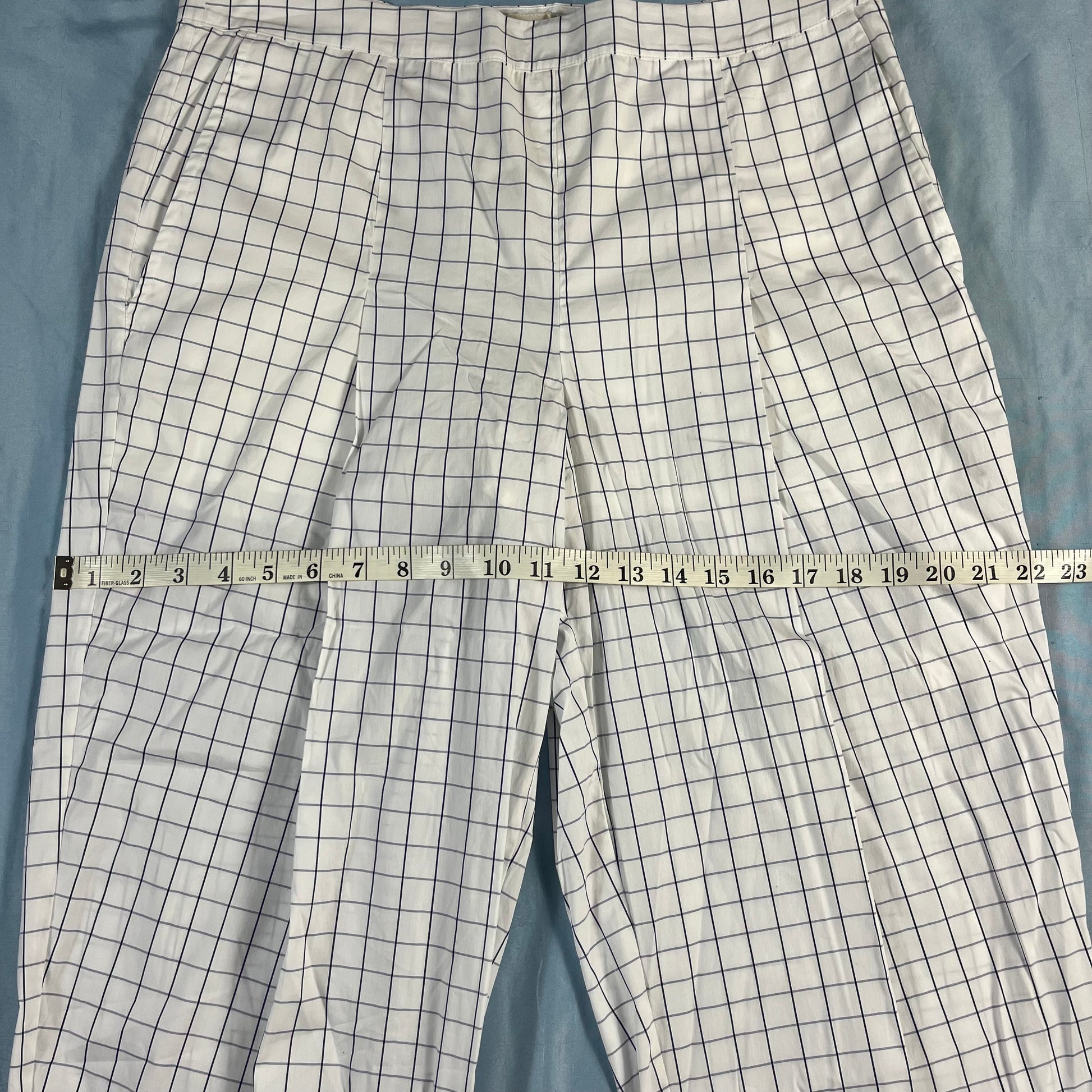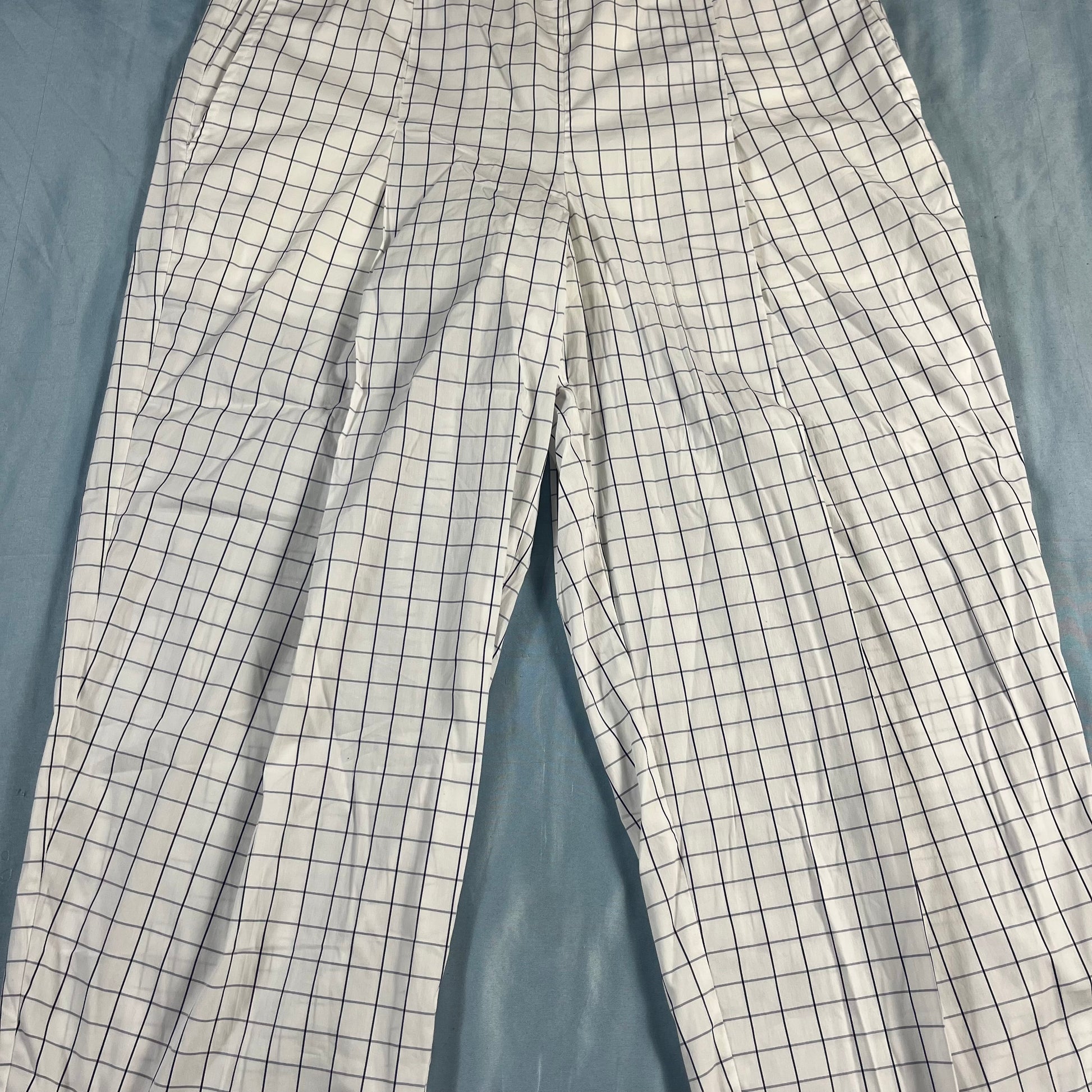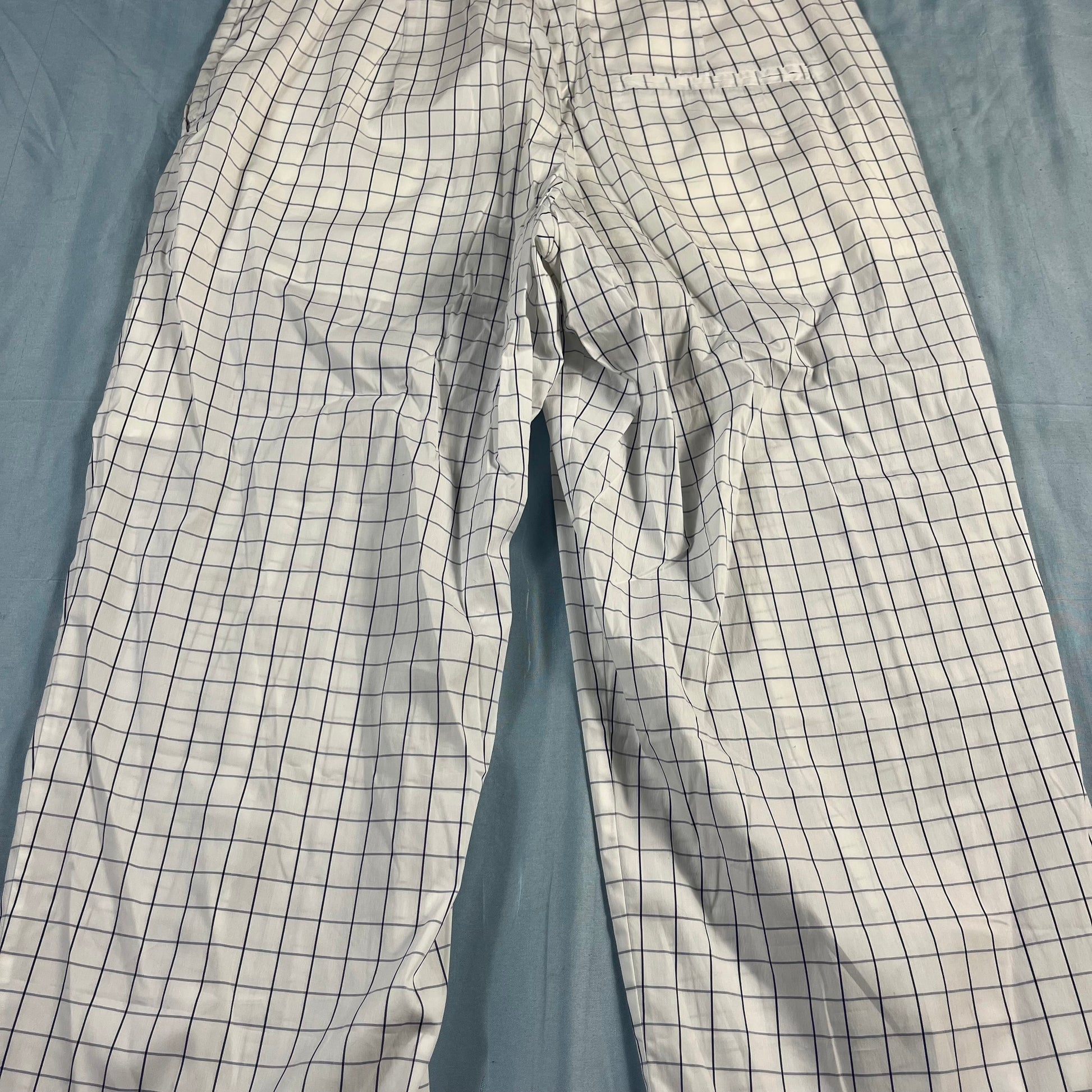 : Baum und Pferdgarten, Nagihan pants, grid trousers, white and blue, size 42, US 10, NWT, Danish design, Copenhagen style, architectural fashion, tailored pants, CPFW