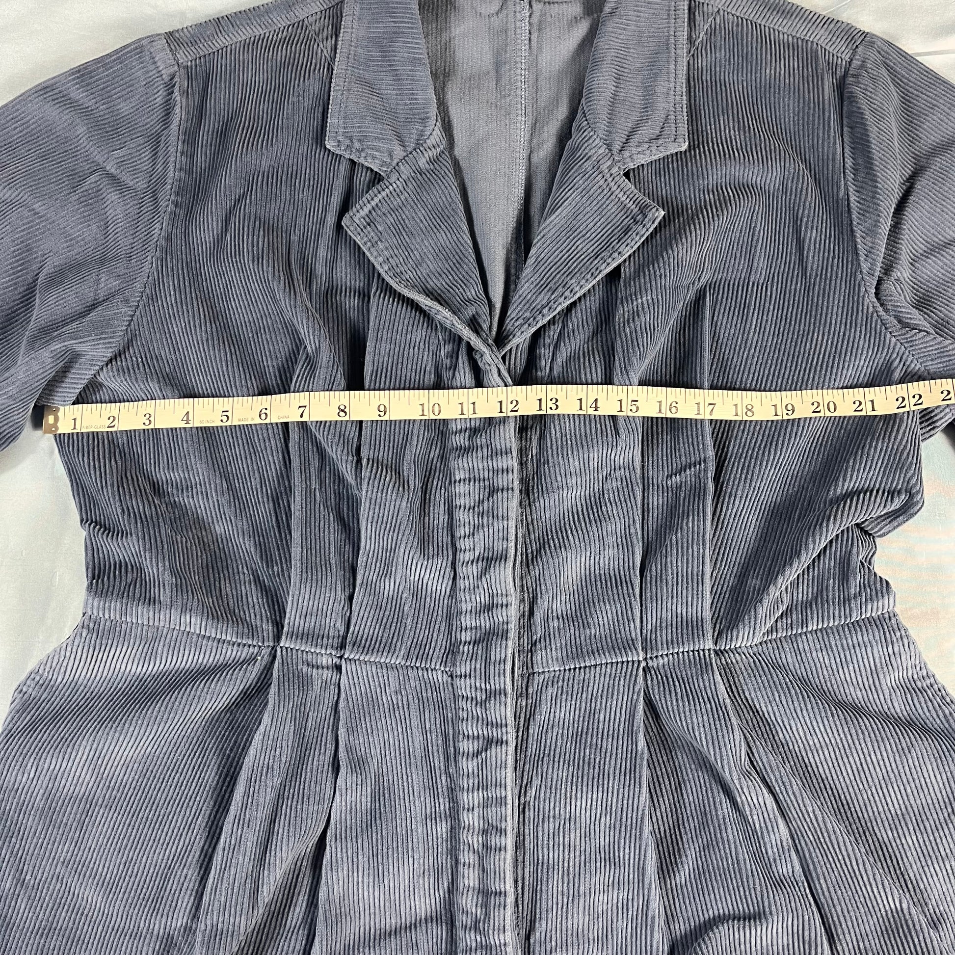 : Ilana Kohn, "Lauren" jumpsuit, blue corduroy, pleated coverall, architectural, size 1X, plus size, made in NYC, slow fashion, future vintage, tailored utility