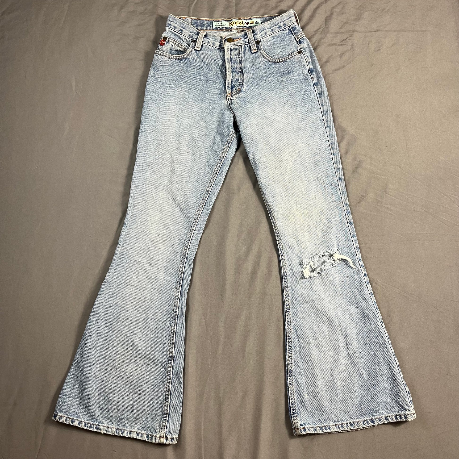 sourced with love in bham, AL. Mudd, flare jeans, Y2K, 90s, light wash, paper tag, denim, juniors, rare, vintage