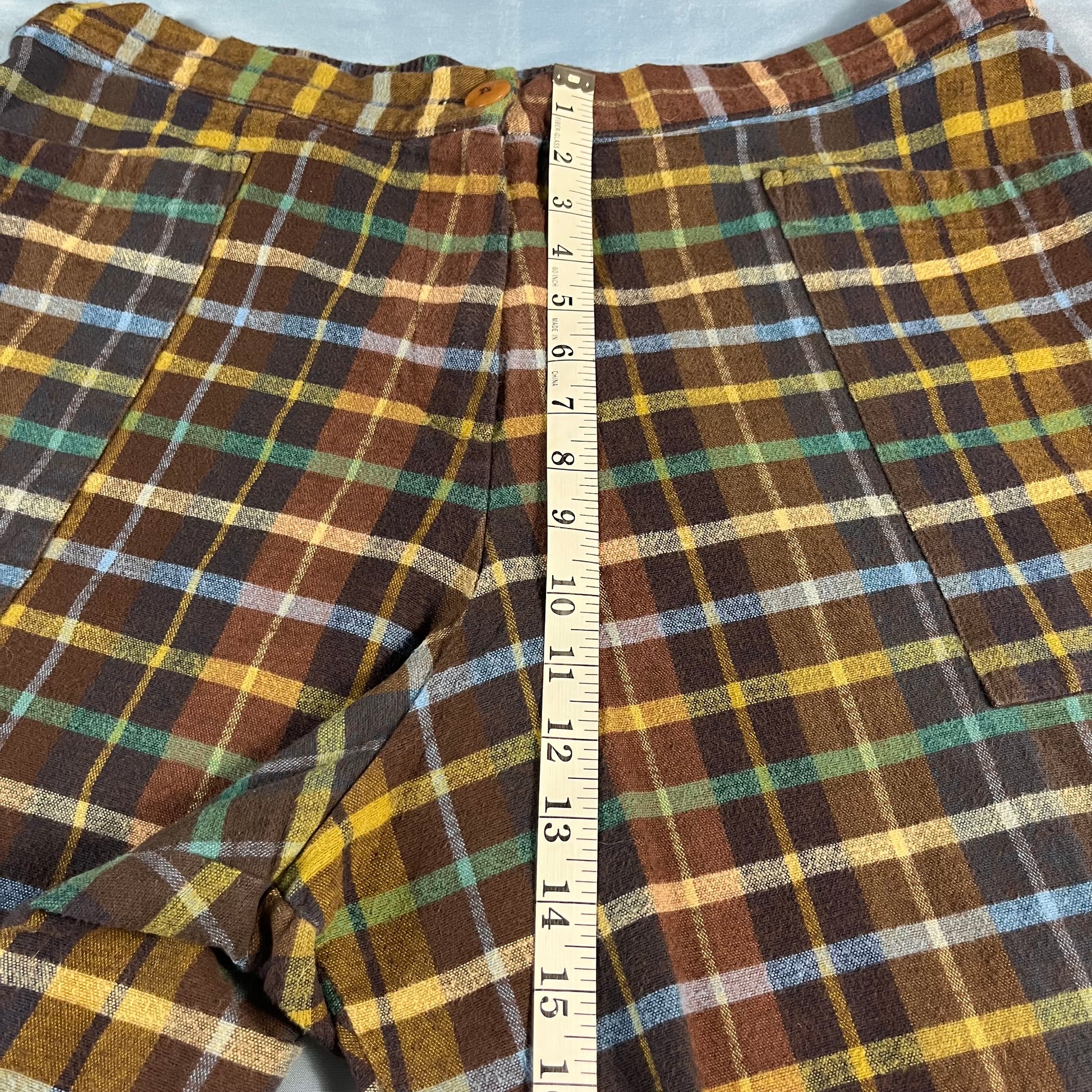 details: "rainbow plaid" print, elastic waist, cropped barrel leg, archival, demi-vintage, future vintage, patch pockets