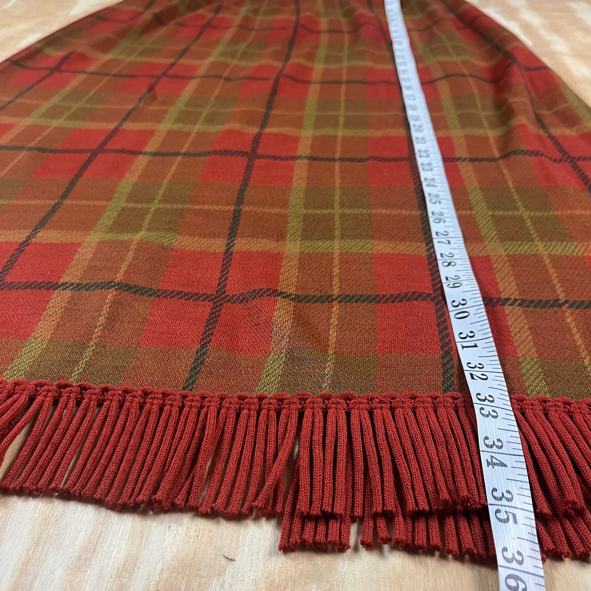 preloved plaid fringe midi skirt - L/XL