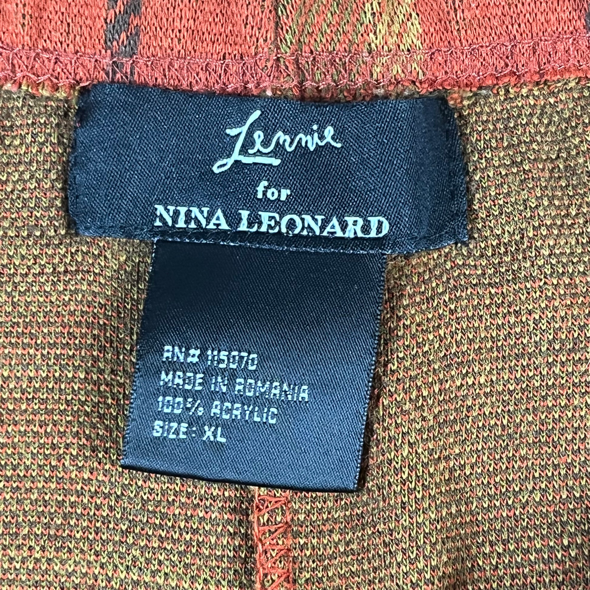 a cozy, high-texture staple for the archival rotation. this vintage Lennie for Nina Leonard skirt is crafted from a soft, sweater-knit acrylic in a classic earthy plaid of red, green, and brown. the silhouette features a comfortable elastic waistband, a straight midi-length cut, and a unique statement fringe hem. with its back slit for ease of movement, this piece is an ideal anchor for dark academia, cottagecore, or eclectic styling.