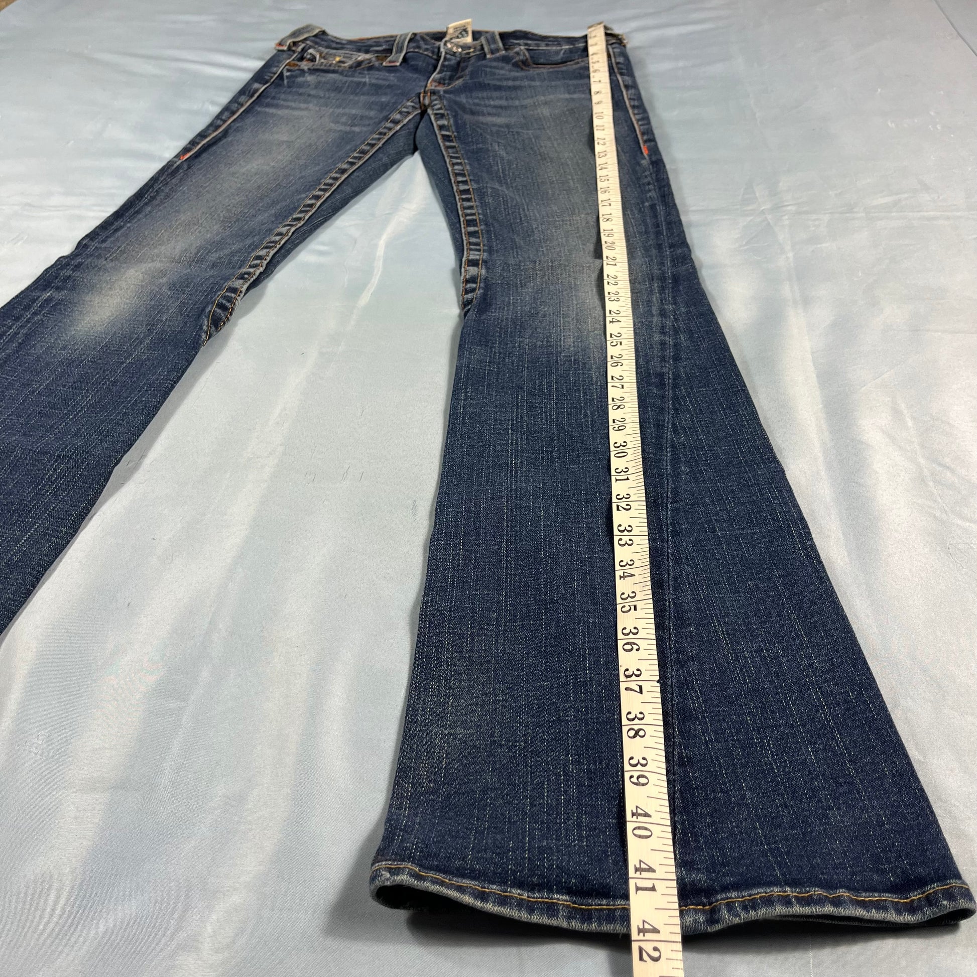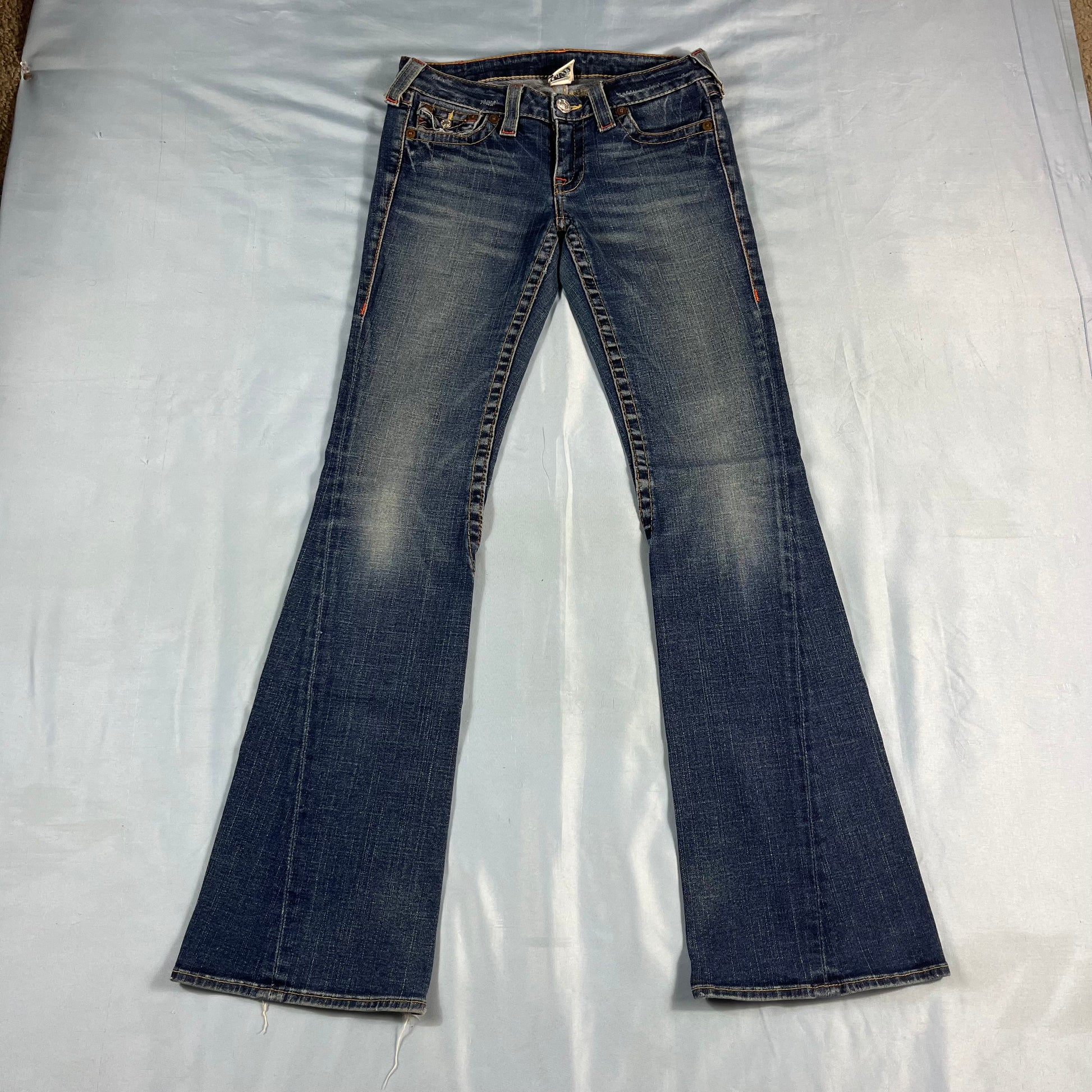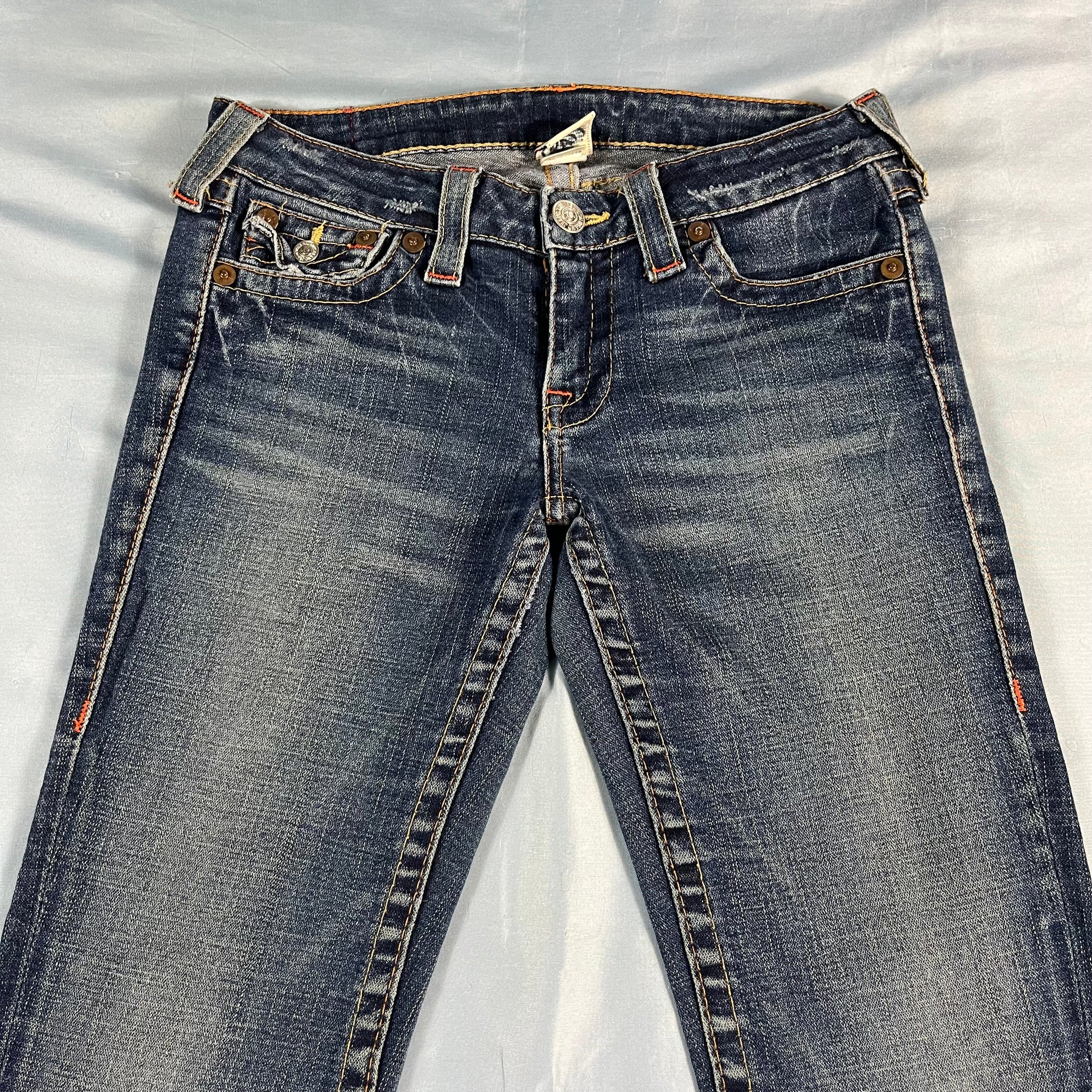 preloved True Religion Ricky jeans. iconic ultra low rise dark wash denim with a bootcut flare.