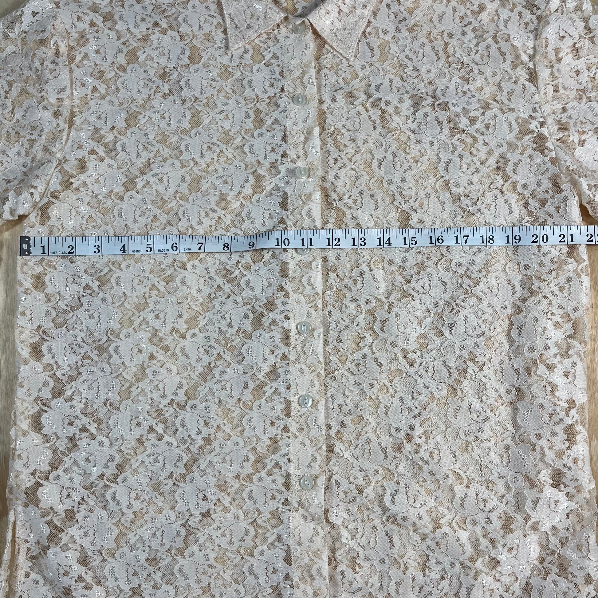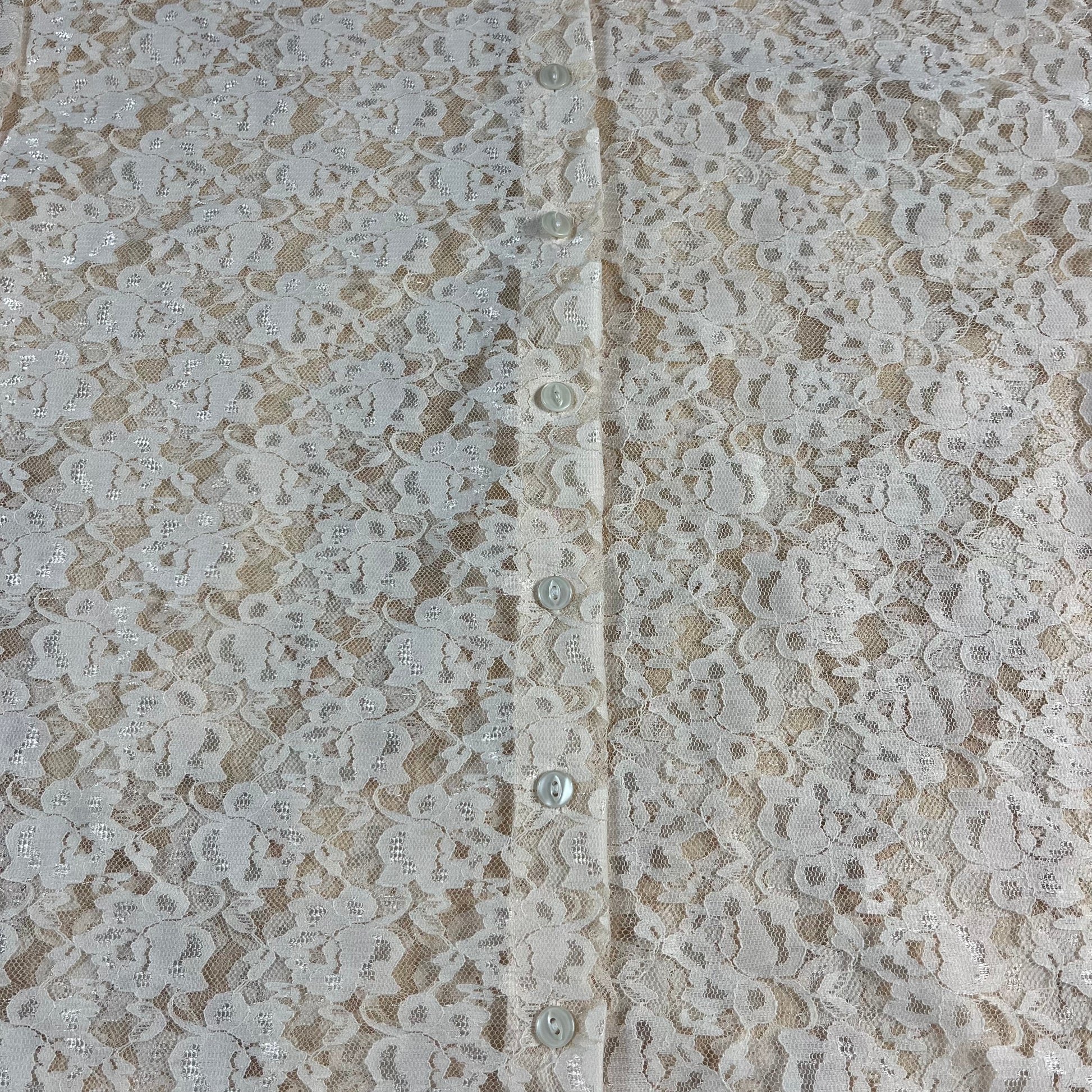 : lace blouse, cream floral, sheer top, button down, size M, romantic, coquette, boho, victorian style, vintage blouse, layering piece