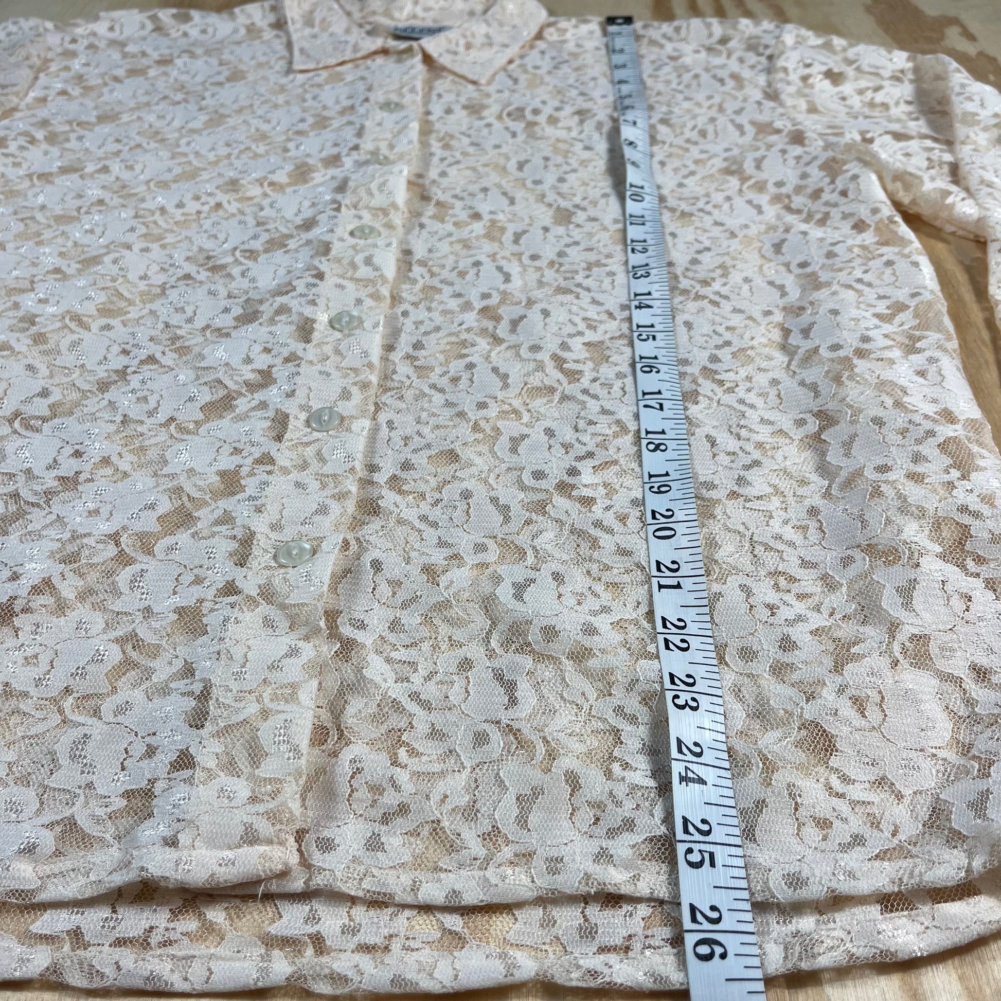 preloved cream floral sheer lace blouse - S/M