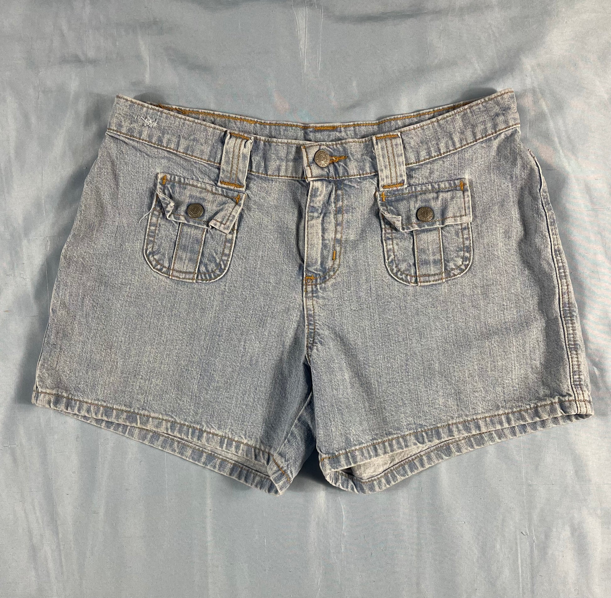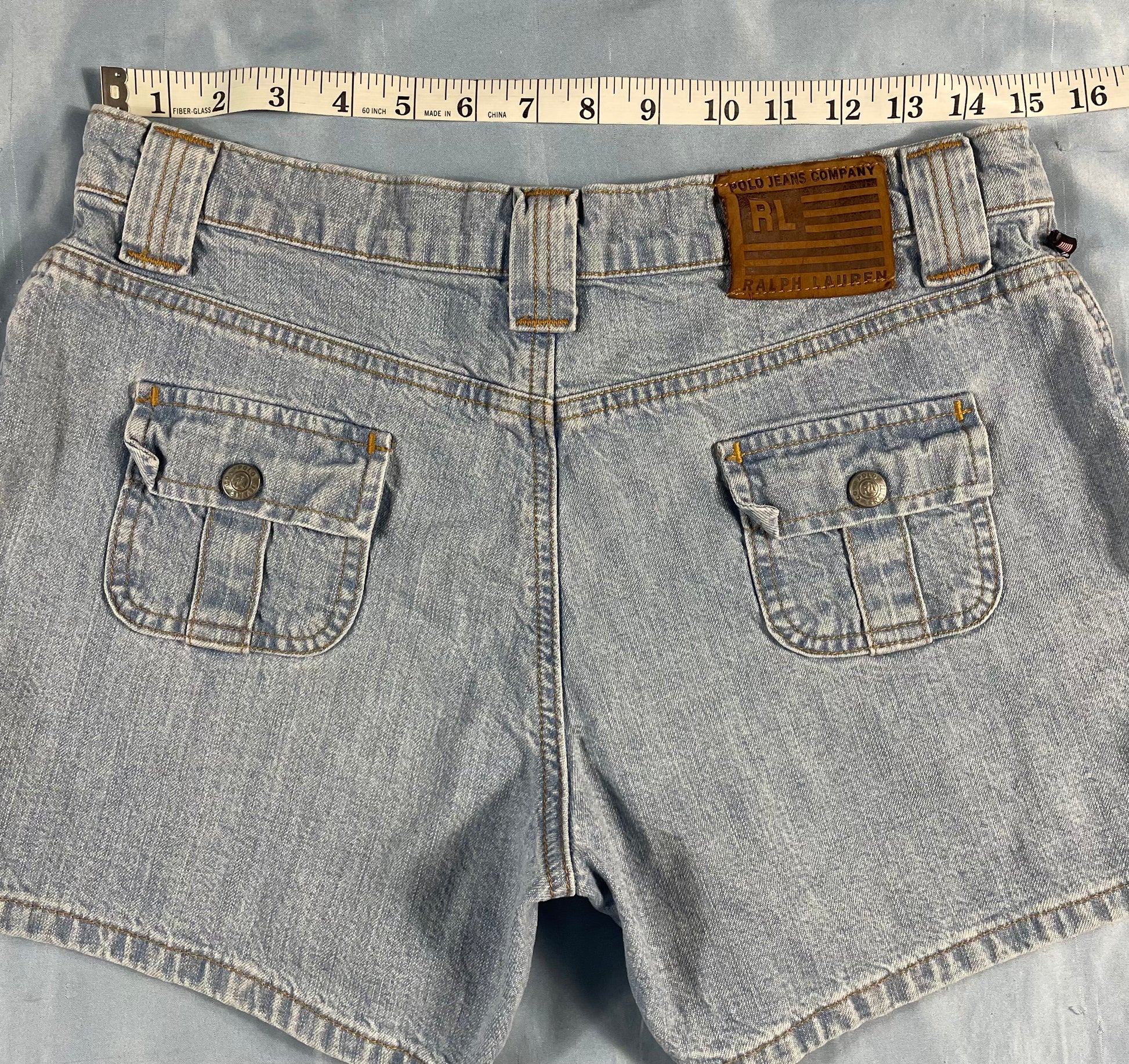 VTG, 90s, 2000, denim, light wash, Ralph Lauren, patch pocket, stone washed, Polo Ralph Lauren, jean shorts, cargo, saturday denim, snap pockets, utility, 3.5" inseam, relaxed, summer, spring, mom